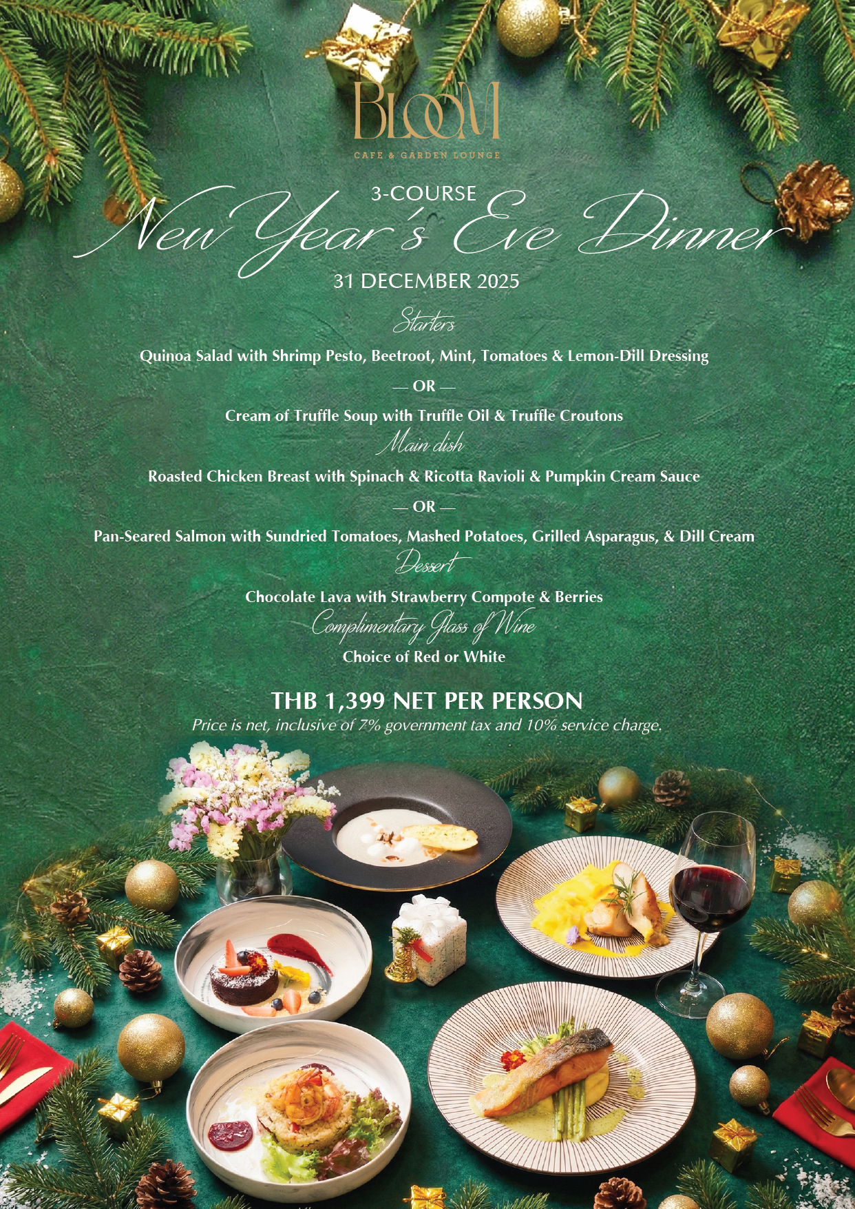 Make your Christmas and New Year's Eve unforgettable with our 3-Course Set Menus, perfectly crafted for the festive season. Enjoy exquisite dining in the heart of Bangkok, surrounded by beautiful garden decorations.