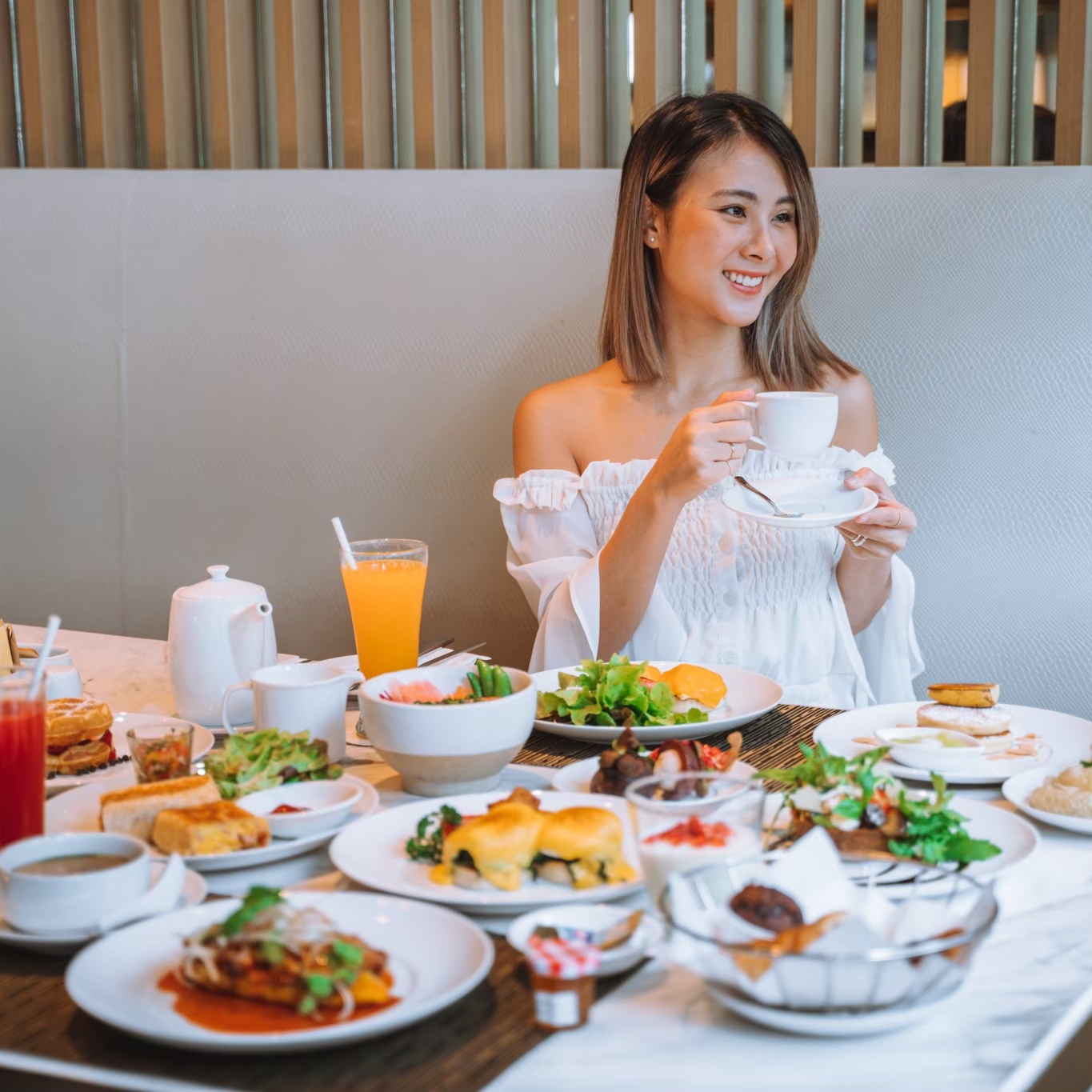 - บุฟเฟ่ต์อาหารเช้าที่ 57th Street Restaurant at Bangkok Marriott Hotel Sukhumvit ให้บริการทุกวันตั้งแต่เวลา 6:00 น. - 10:30 น.