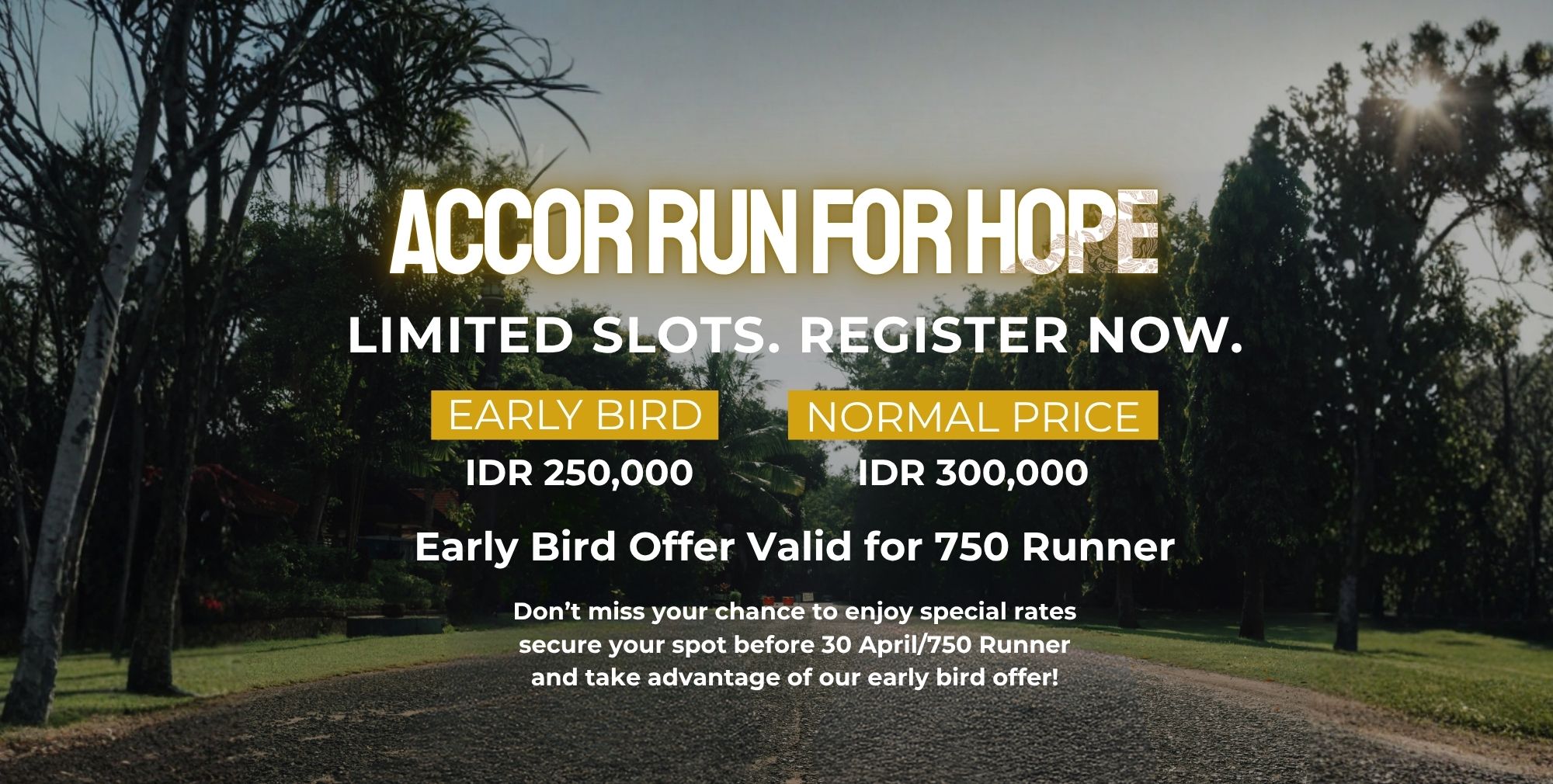 Participation Policy: Accor Run For Hope 2026 welcomes both Indonesian and international participants. While all runners are invited to join the race and enjoy the experience, official podium placements and winner titles are reserved for Indonesian citizens (WNI).