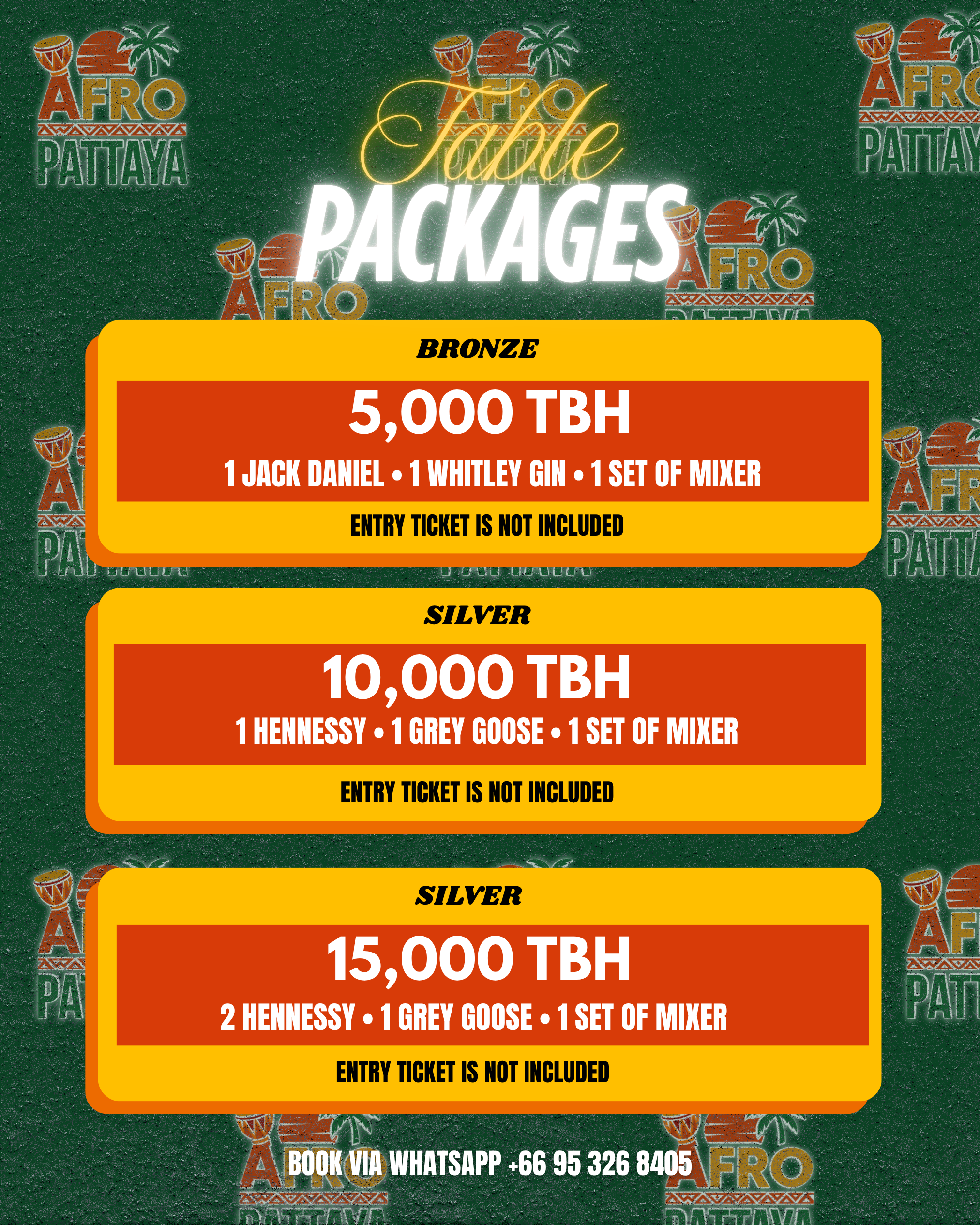For table enquires, please contact our WhatsApp +66 95 326 8405