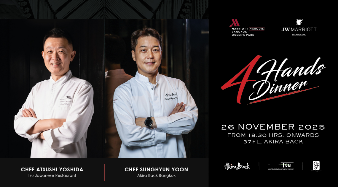 - This voucher is valid for 4Hands Dinner at Akira Back on 37th floor, Bangkok Marriott Marquis Queen’s Park on 26th November dinner only