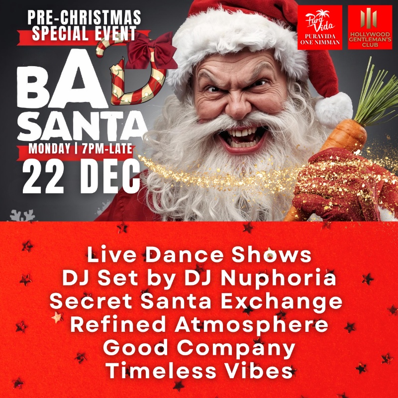 Bad Santa slips in quietly—after dark, and just a little off-script. Exclusive live dance performances by Hollywood Gentleman's Club weaving through the night, blending sound, movement, and mood into a seamless luxurious experience.