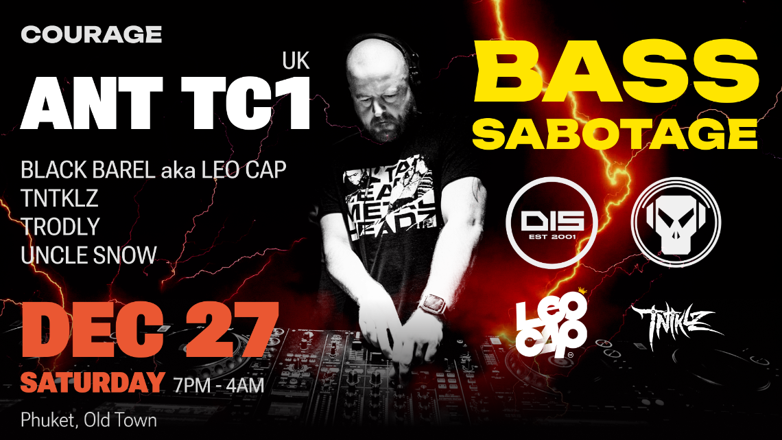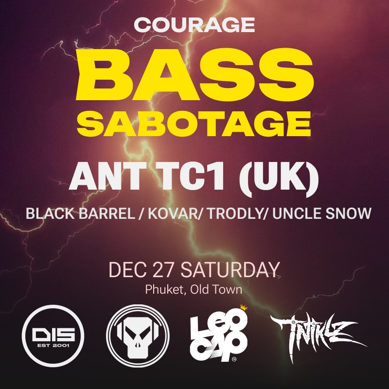 Courage Bar closes out 2025 with one last, full-power drum & bass night in Phuket Old Town — featuring a key figure from Dispatch Recordings and closely linked to the Metalheadz legacy. Expect heavy bass, fast tempo and a proper end-of-year send-off with international guests, live elements and an MC on the mic.