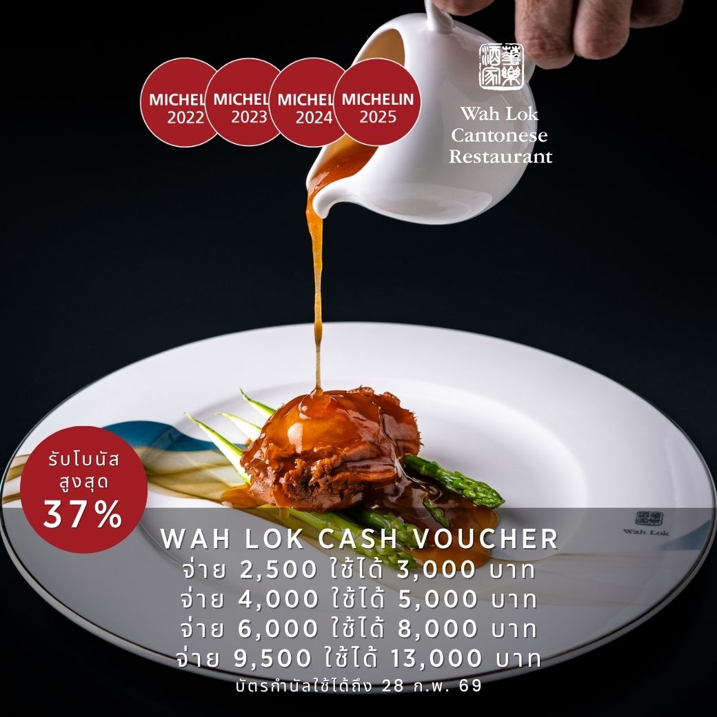 - Cash vouchers can be used for food and beverage at Wah Lok restaurant and Cash vouchers applicable for take-away.