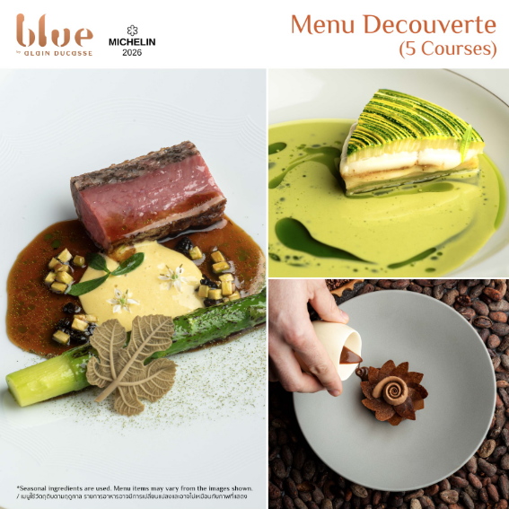 สำหรับการสำรองที่นั่ง กรุณาติดต่อทีมงาน Blue by Alain Ducasse โทร. 065-731-2346 หรือ อีเมล [email protected]