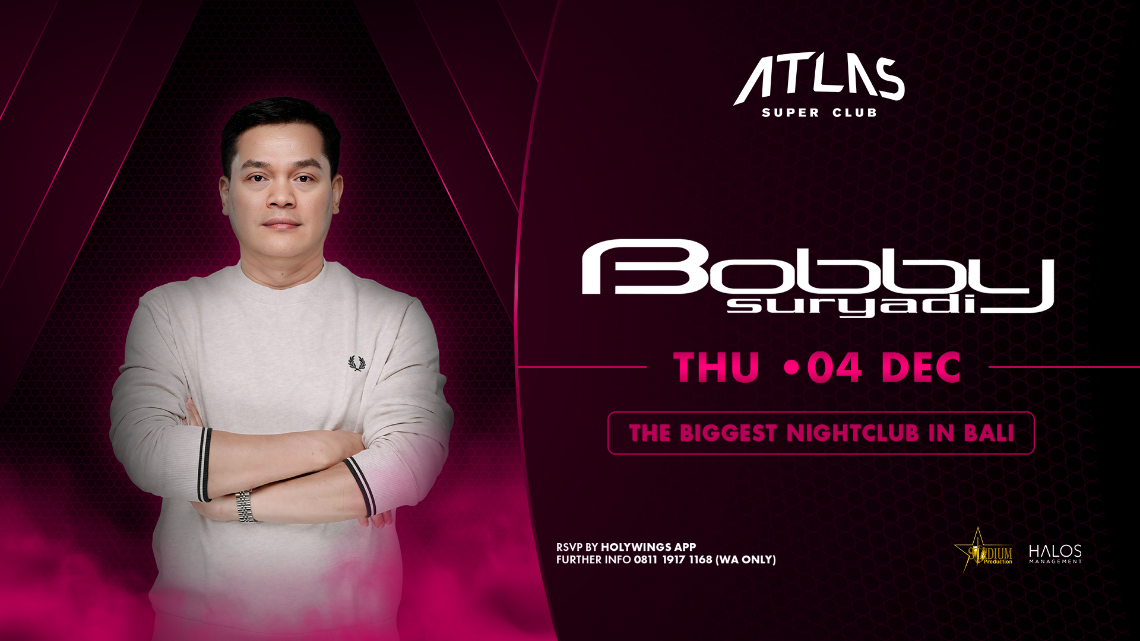 Atlas Super Club proudly presents Indonesian legend Bobby Suryadi, delivering a signature high-energy set that moves the crowd like no one else.