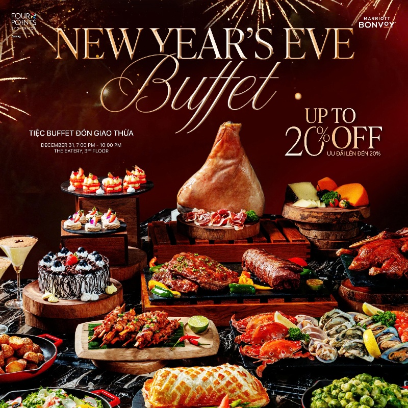 A lavish international buffet with seasonal specials and a live band to welcome the New Year.