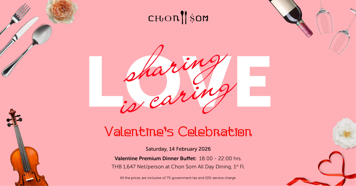 Celebrate love with a thoughtfully curated, unforgettable Valentine’s Day dining experience at Chon Som All Day Dining. Indulge in romantic flavors, warm ambiance, and special moments designed to make your night truly memorable.