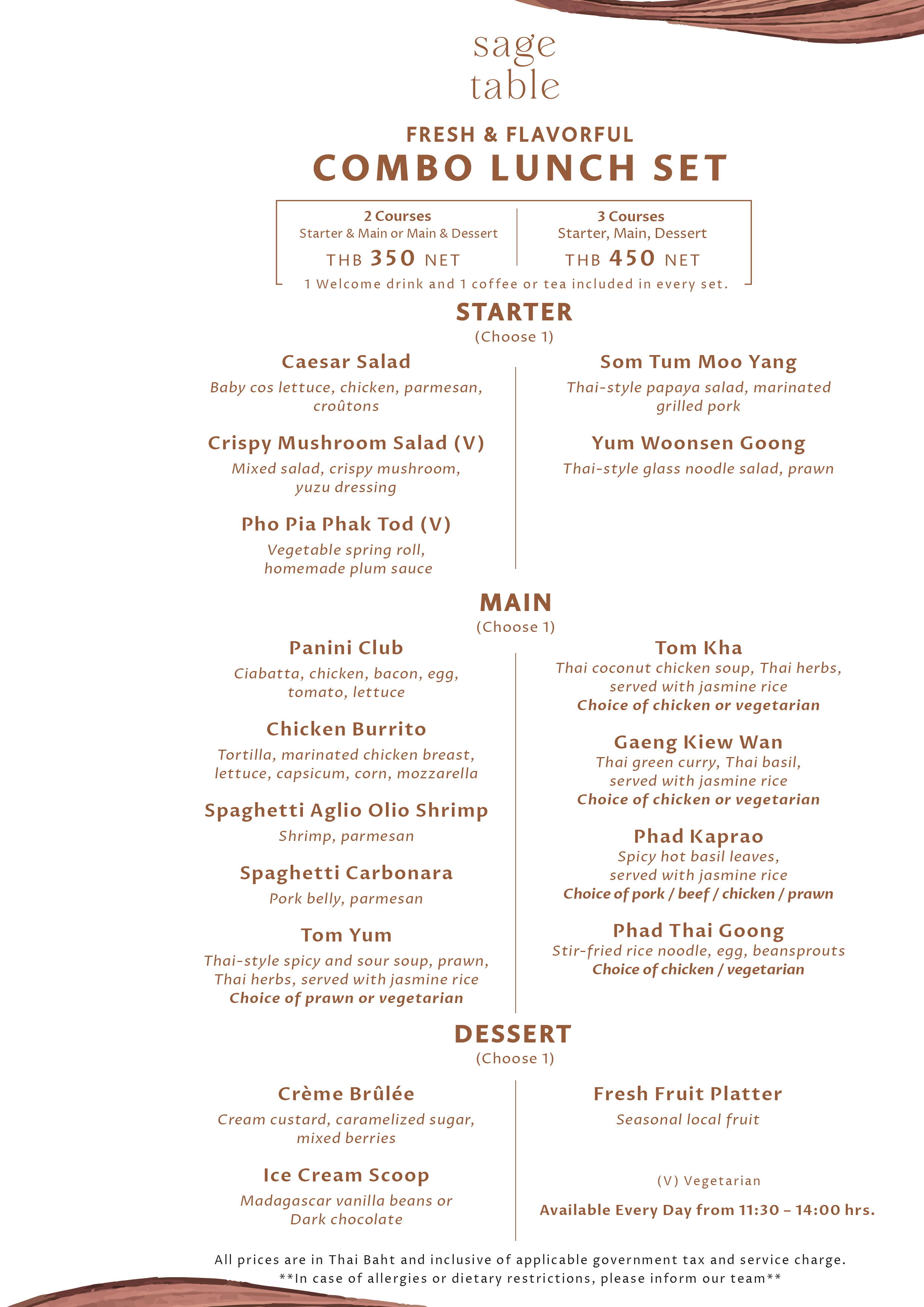 The new Combo Lunch Set at Sage Table blends Thai favorites and international classics — perfect for casual lunches, business meetings, or catch-ups with friends.