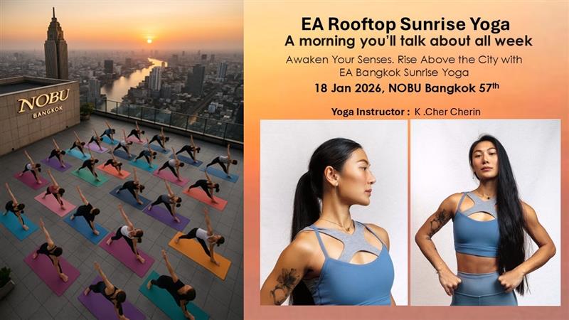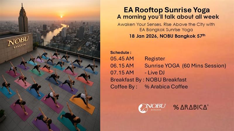 โยคะรับแสงอาทิตย์ขึ้น เหนือเส้นขอบฟ้าใจกลางกรุงเทพฯ 🌇 สัมผัสเช้าวันใหม่บน Rooftop ชั้น 57 กับกิจกรรม '𝐄𝐀' 𝐑𝐨𝐨𝐟𝐭𝐨𝐩 𝐒𝐮𝐧𝐫𝐢𝐬𝐞 𝐘𝐨𝐠𝐚 ที่ Nobu Bangkok