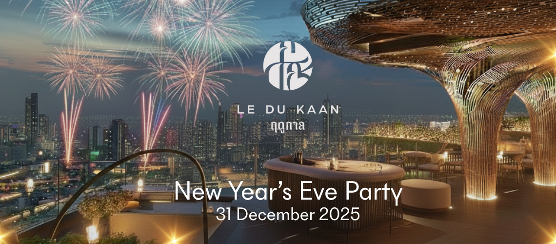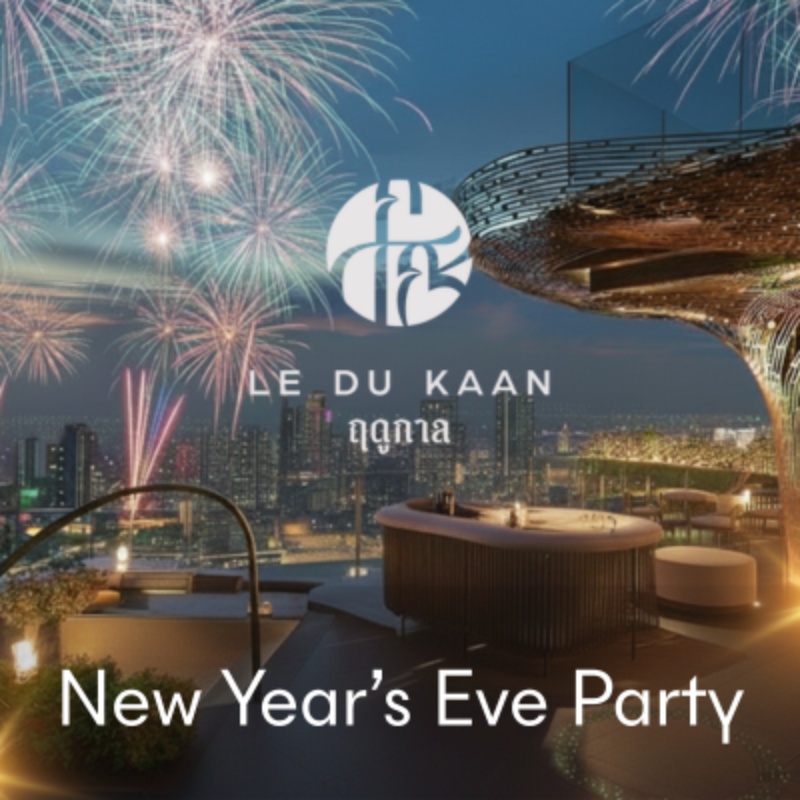 Celebrate New Year’s Eve in style at Le Du Kaan’s “The White Horizon”, an all-white party high above Bangkok. Delight in modern Thai cuisine, free-flow premium drinks, live music and DJs, and captivating dance performances. Surrounded by glowing white décor and lotus blooms, enjoy the city’s most spectacular fireworks and welcome 2026 with elegance, energy, and a glittering skyline.