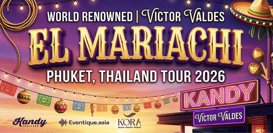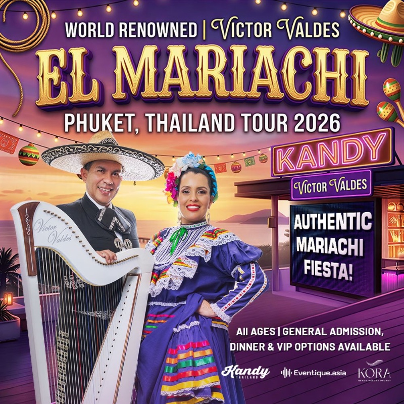Experience the vibrant heart and soul of Mexico as El Mariachi Victor Valdes arrives in Phuket, performing live at Kandy Rawai, for two spectacular dinner shows, Saturday the 2nd of May and Sunday the 3rd of May, 2026.