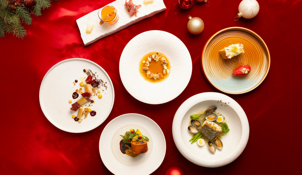 Celebrate with family and enjoy highlights such as ibérico ham, Oscietra caviar, oysters, smoked salmon soup, foie gras, Dover sole, Iberian pork, and apple millefeuille.