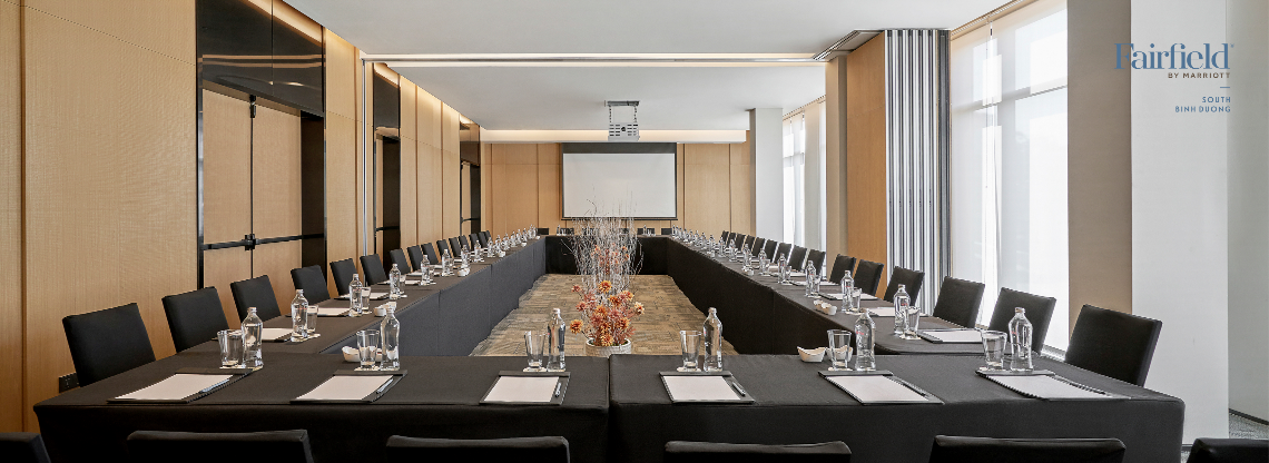 Nâng tầm các buổi gặp gỡ doanh nghiệp với Gói họp cả ngày tại phòng họp Lái Thiêu, không gian sự kiện linh hoạt tại Fairfield by Marriott South Binh Duong được thiết kế cho sự tập trung và hiệu quả công việc. Lý tưởng cho các cuộc họp cấp cao và các buổi thảo luận sáng tạo, gói dịch vụ này mang đến sự kết hợp hoàn hảo giữa sự tiện nghi hiện đại và dịch vụ chuyên nghiệp tại Khu công nghiệp Việt Nam – Singapore (VSIP 1).