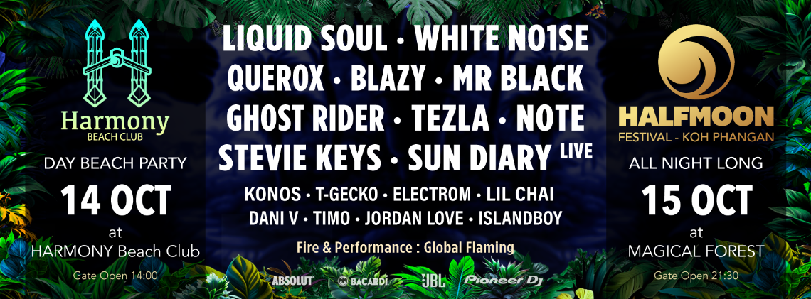-14th Oct 2025 : Day party at Harmony beach club from 14:00 till Midnight (Pre-Halfmoon)