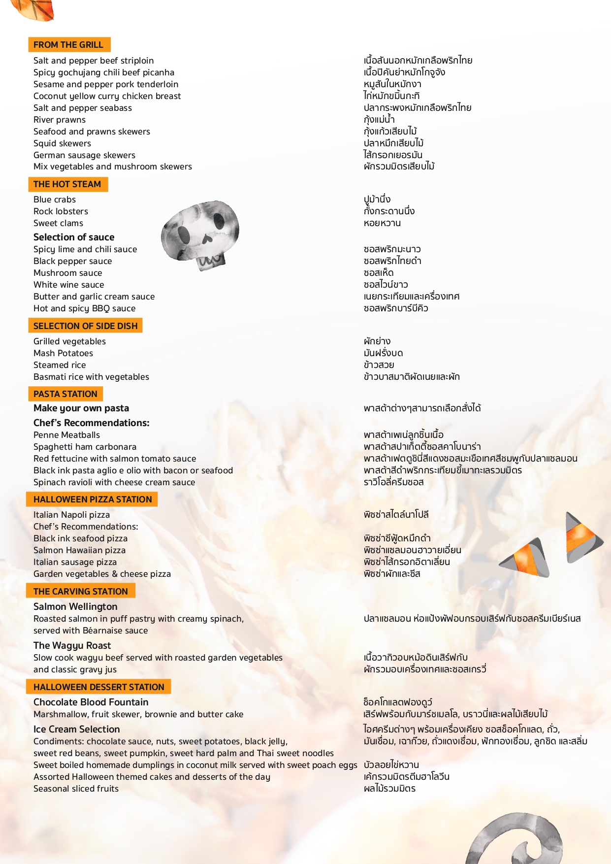 ยกขบวนอาหารอินเตอร์-ไทย ญี่ปุ่น western & BBQ ซีฟู้ดสด และของหวานธีมฮาโลวีน พิเศษ! แต่งฮาโลวีนแล้วมาร่วมลุ้นรางวัลกัน