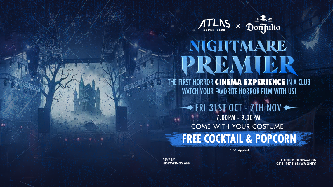 Atlas Super Club presents Nightmare Premier, the first-ever horror cinema experience in a club.