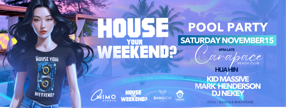 Get ready for an electrifying night of pure house vibes as House Your Weekend lights up the iconic Carapace Beach Club in Hua Hin on Saturday, November 15th, 2025. The party kicks off at 4 PM sharp - be there when the first beat drops!