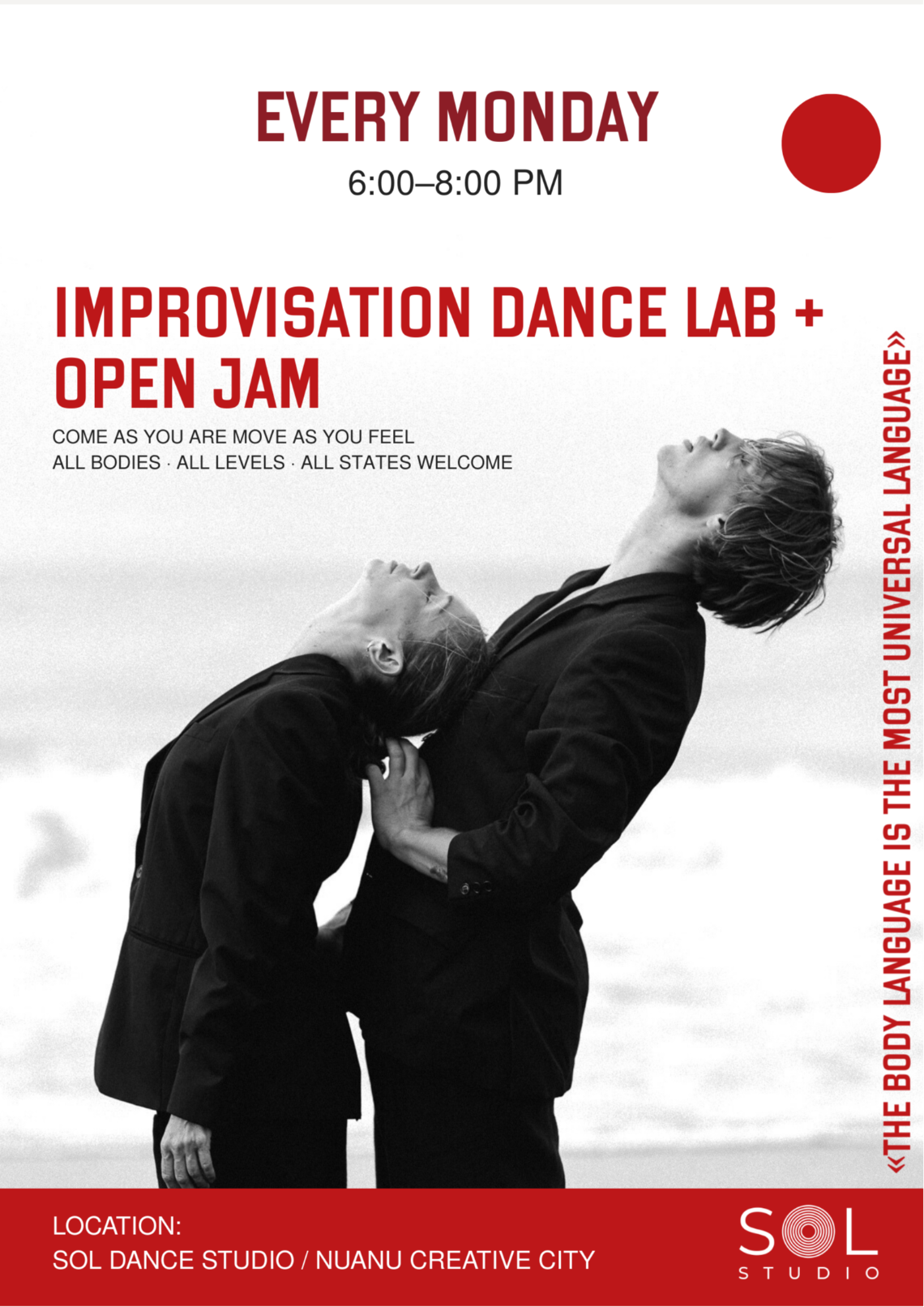 Improvisation Dance Lab + Open Jam, Every Monday