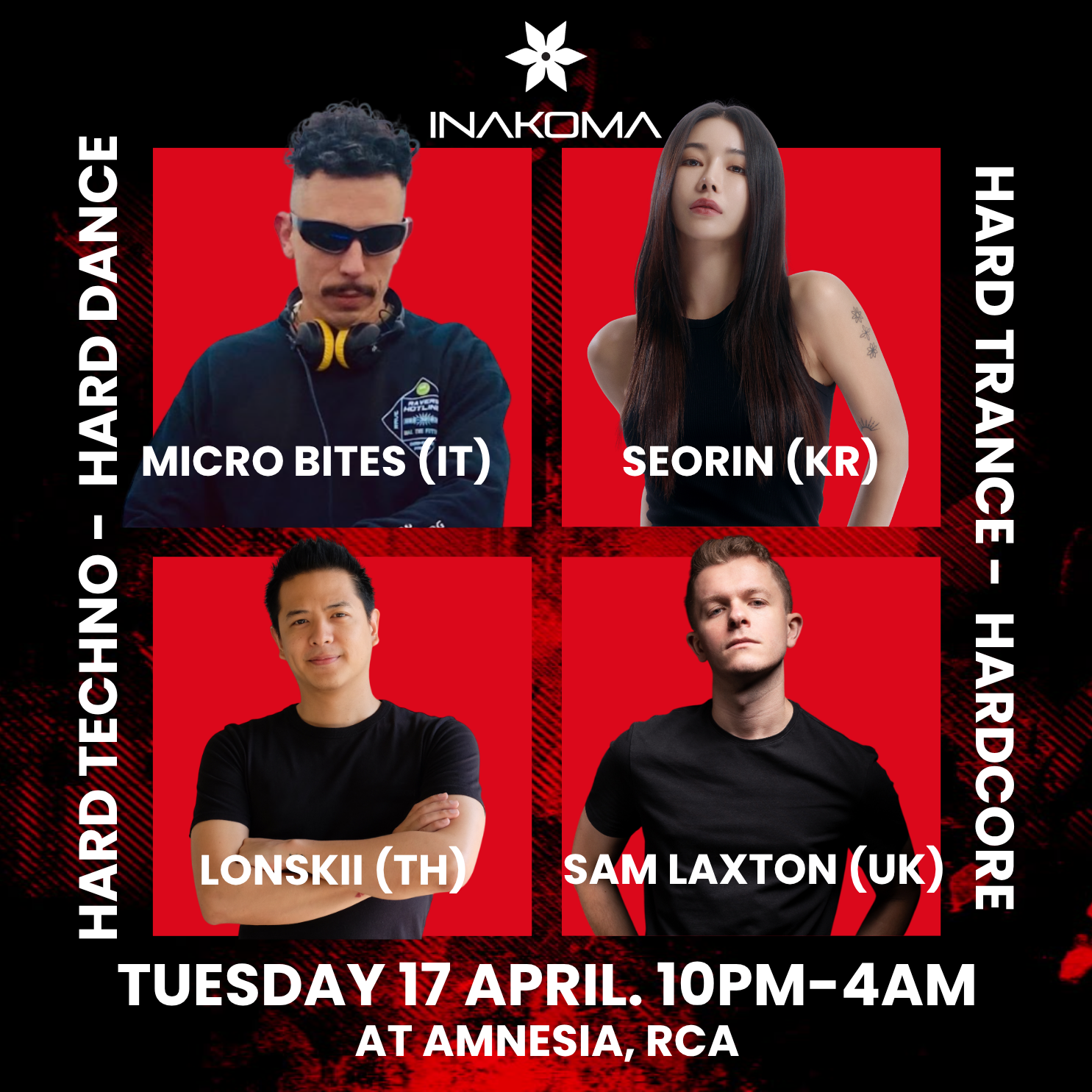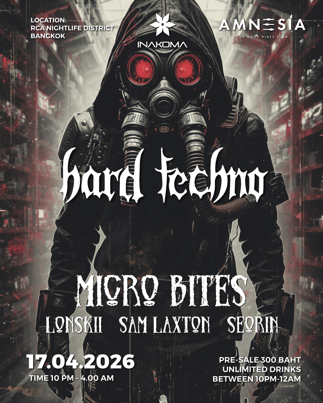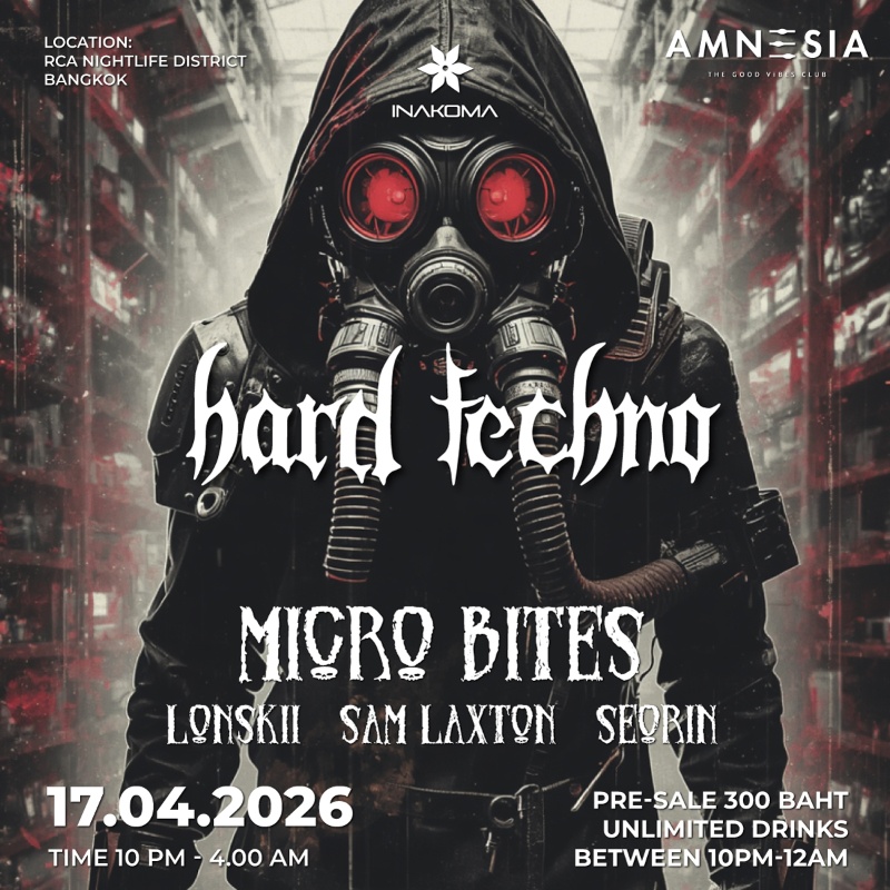 INAKOMA: Thailand's #1 Hard Techno Underground Rave Every Friday Night. 10 PM – 4:00 AM at AMNESIA in RCA Bangkok. The Best Underground Techno Experience in Bangkok Join us for a night of hard-hitting techno this Friday at AMNESIA, the ultimate venue for true techno lovers! #hardtechno #bangkok #party #rave #thailand