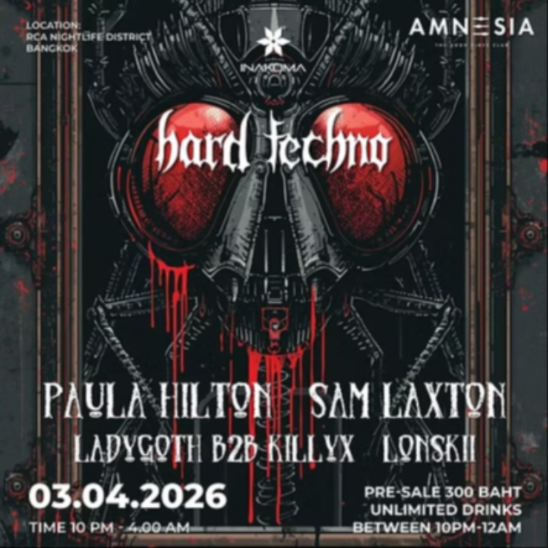 INAKOMA: Thailand's #1 Hard Techno Underground Rave Every Friday Night. 10 PM – 4:00 AM at AMNESIA in RCA Bangkok. The Best Underground Techno Experience in Bangkok Join us for a night of hard-hitting techno this Friday at AMNESIA, the ultimate venue for true techno lovers! #hardtechno #bangkok #party #rave #thailand