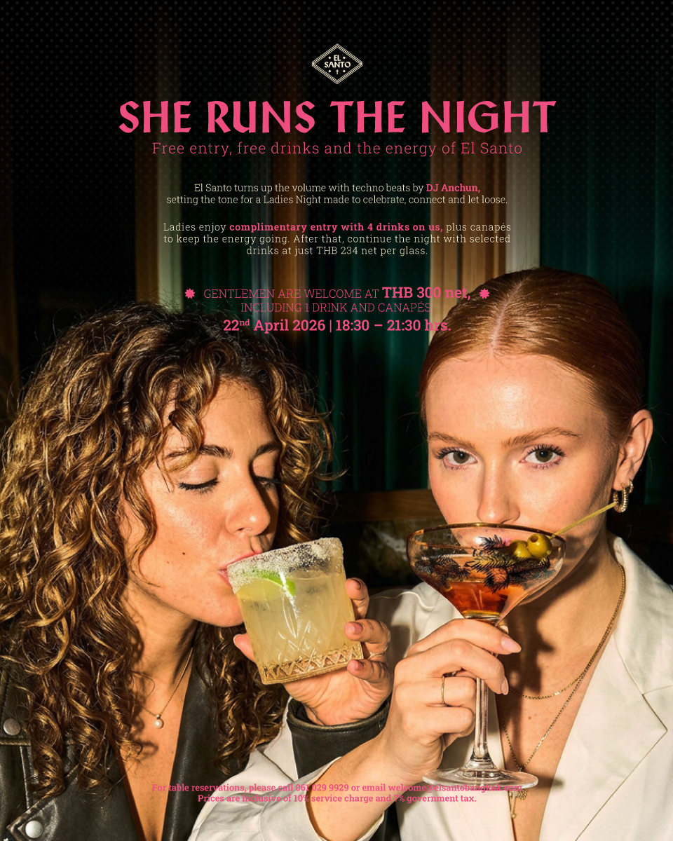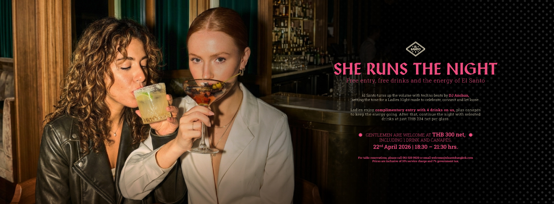 • Ladies enjoy complimentary entry with 4 drinks on us, plus canapés to keep the energy going. After that, continue the night with selected drinks at just THB 234 net per glass.