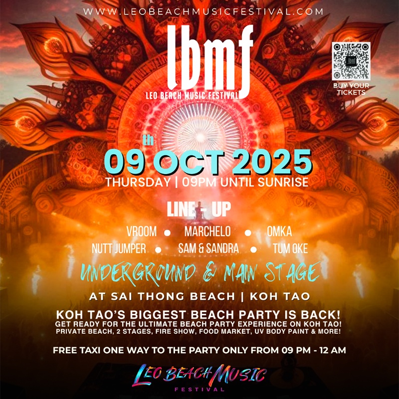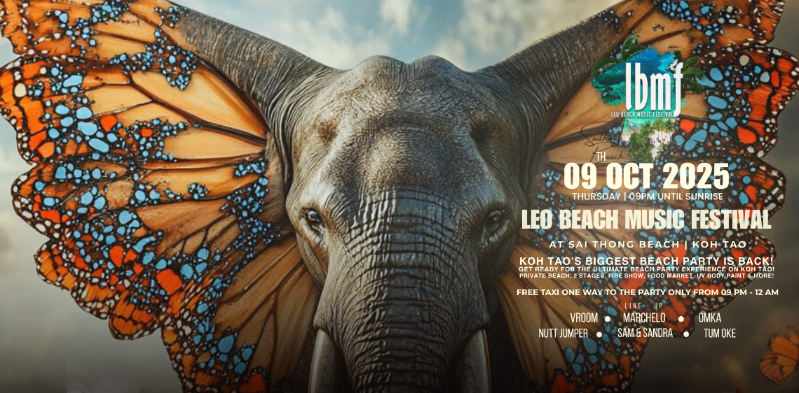 • 9:00 PM – Until Sunrise : Beach Party in an unique location on Koh Tao  @ Sai Thong Beach