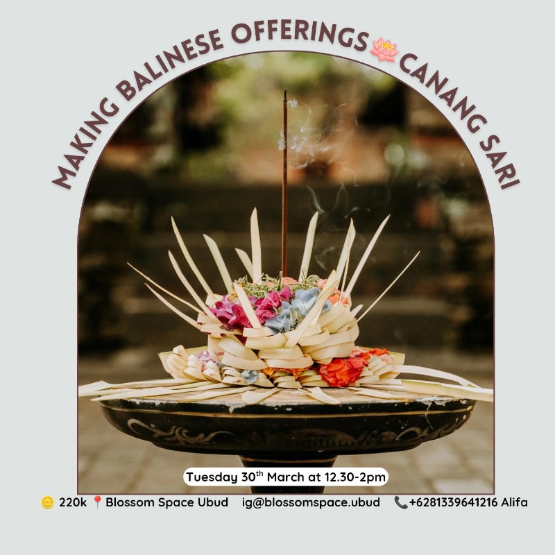 🌸Step into the heart of Balinese culture through a meaningful and sacred experience. In this workshop, you will learn the beautiful art of making traditional Balinese offerings, a practice filled with gratitude, intention, and devotion.