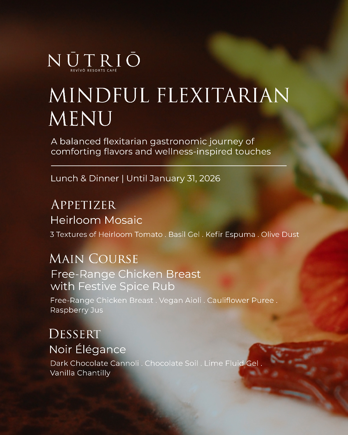 Indulge in our Mindful Flexitarian Menu, a balanced gastronomic experience featuring comforting flavors and wellness-inspired touches.