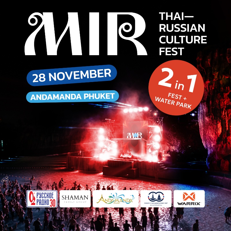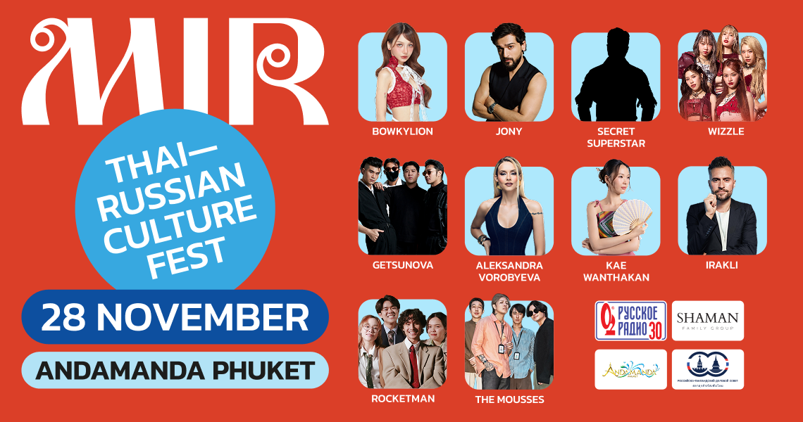The first festival of contemporary Thai–Russian culture at Phuket’s largest water park, Andamanda! Enjoy star performers from Thailand and Russia on one stage, a dance floor right in the pool, and food courts featuring Thai and Russian favorites. Kids can join in with fun water attractions and entertainment.