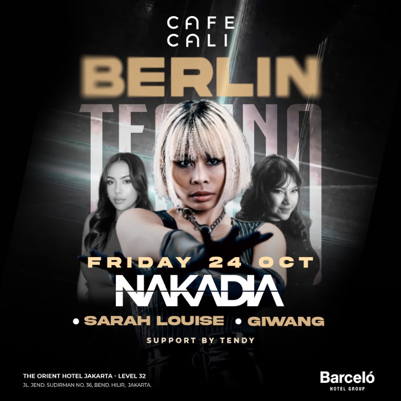 Step into the underground spirit of Berlin’s legendary techno scene—right here in Jakarta. Café Cali proudly presents an exclusive night with NAKADIA, the globally acclaimed techno queen who has ignited dance floors from Berlin to Ibiza.
