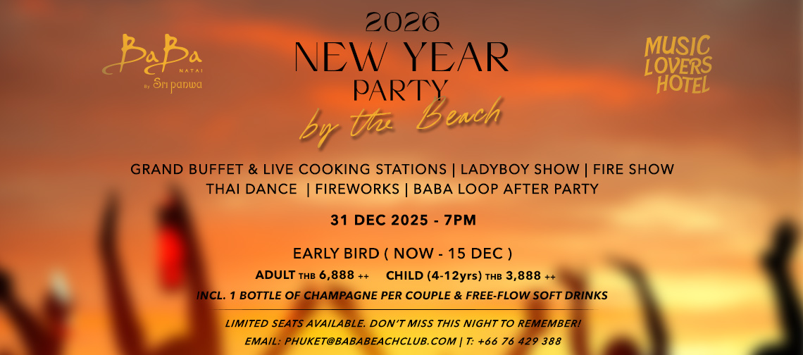 Celebrate the arrival of 2026 with an unforgettable beachfront New Year’s Eve party at Baba Beach Club Natai, where music, dining, and seaside vibes come together for one magical night!