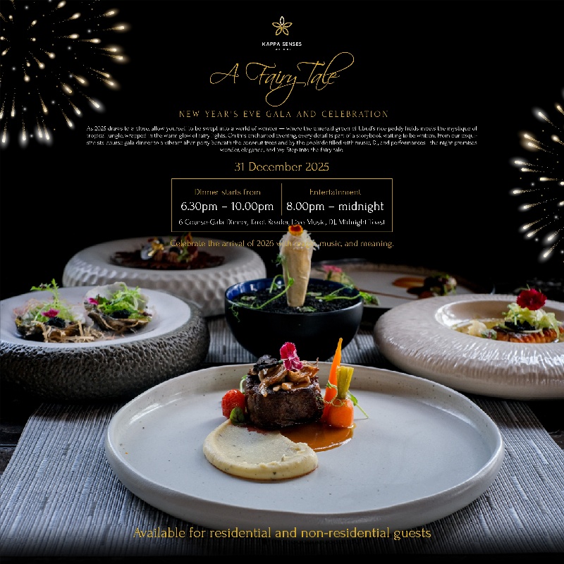 As 2025 draws to a close, allow yourself to be swept into a world of wonder — where the emerald green of Ubud’s rice paddy fields meets the mystique of tropical jungle, wrapped in the warm glow of fairy lights. On this enchanted evening, every detail is part of a storybook waiting to be written. From our exquisite six-course gala dinner to a vibrant after-party beneath the coconut trees and by the poolside filled with music, DJ, and performances - the night promises wonder, elegance, and joy. Step into the fairy tale.