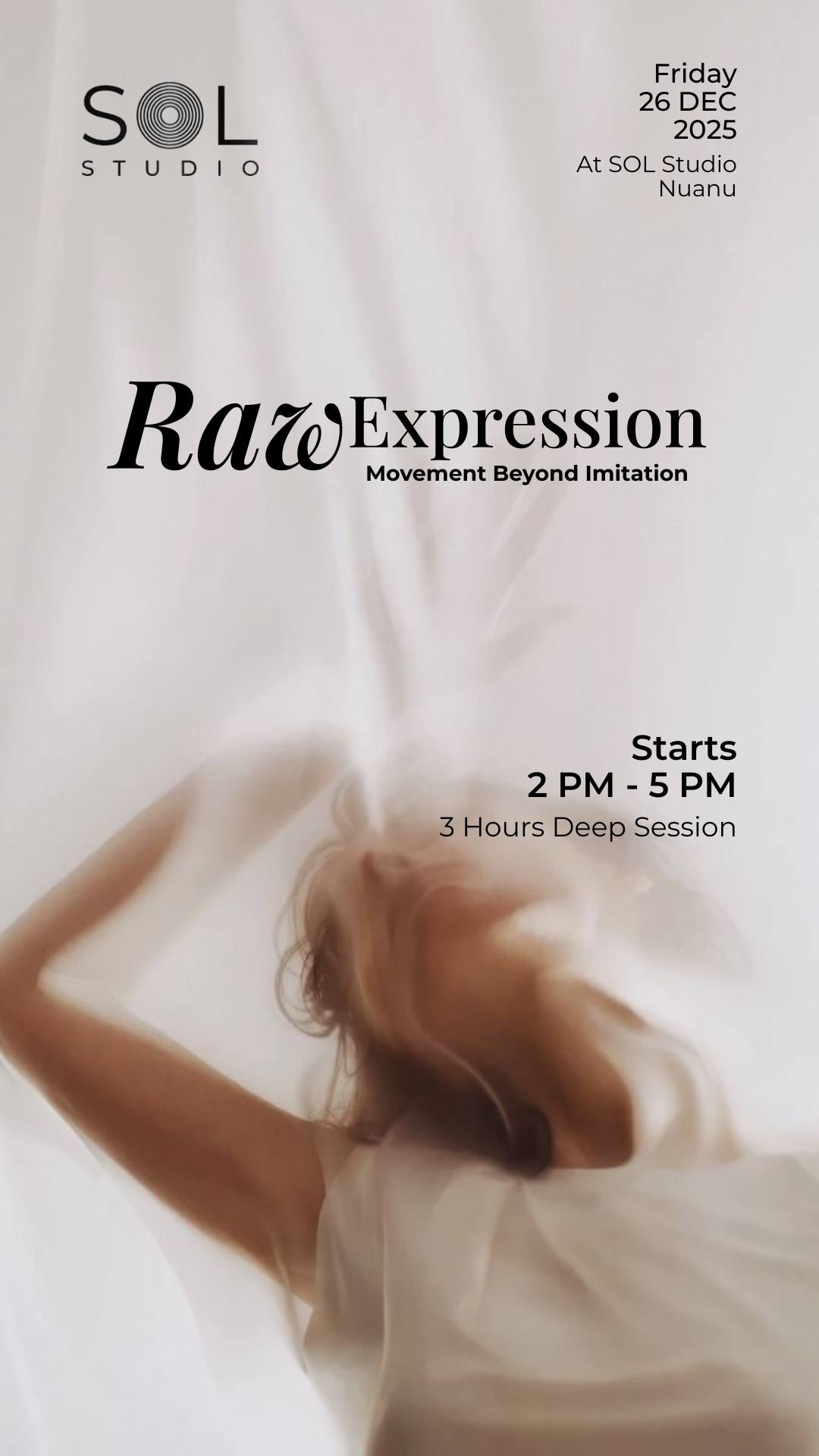 RAW EXPRESSION is an intensive movement workshop focused on embodied expression, presence, and visibility.