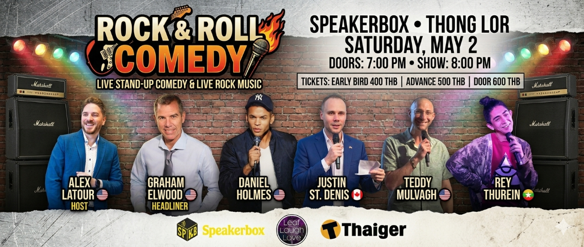 Get ready to shake the walls of Speakerbox Thong Lor! On Saturday, May 2nd, we’re bringing you an epic mashup of two powerhouse genres for a single, unmissable event: Rock & Roll Comedy!