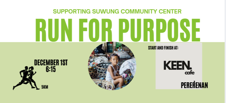 Join us on Monday, 1 December for Run for Purpose, a 5–6km community charity run supporting the children from Suwung Community Centre through Bali Life Foundation.
