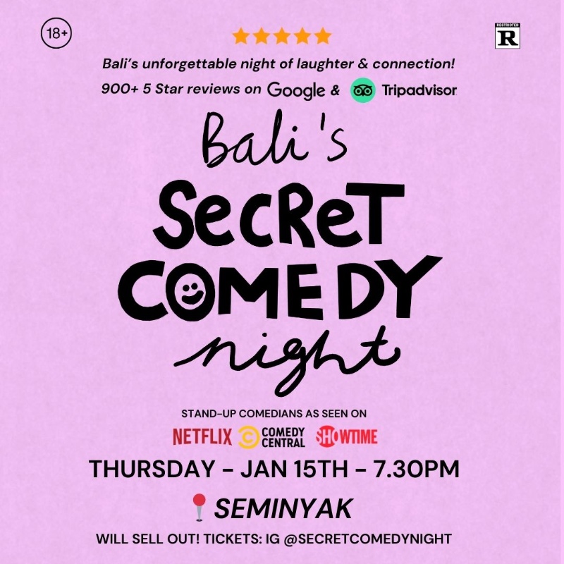 SECRET COMEDY NIGHT - JAN 15TH (Live in Seminyak) - 7.30PM