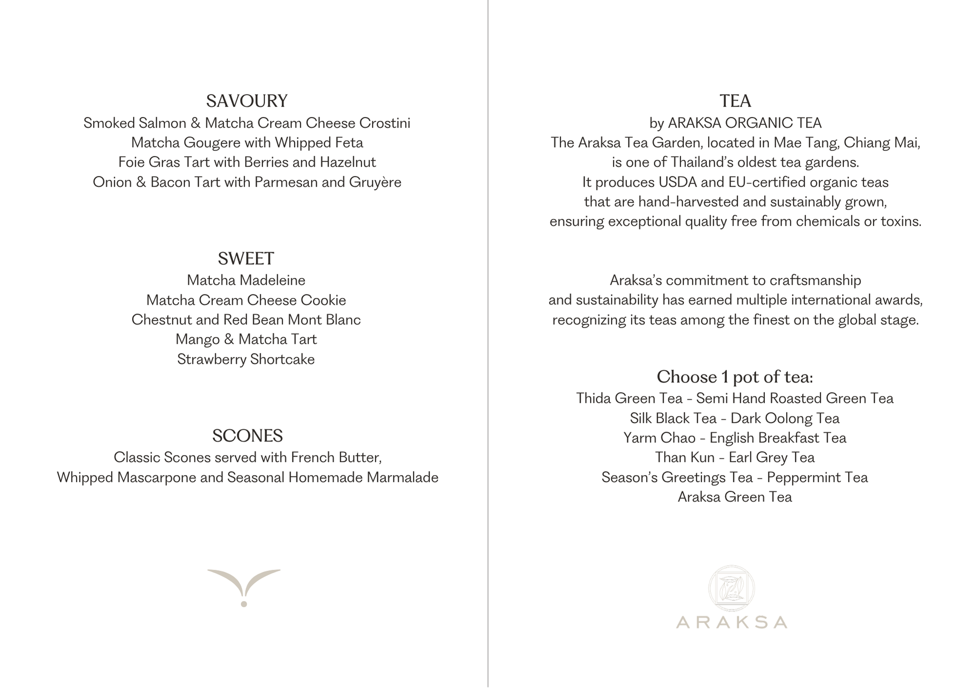 Served with classic scones and a pot of organic tea from Araksa Tea Garden in Mae Tang, Chiang Mai.