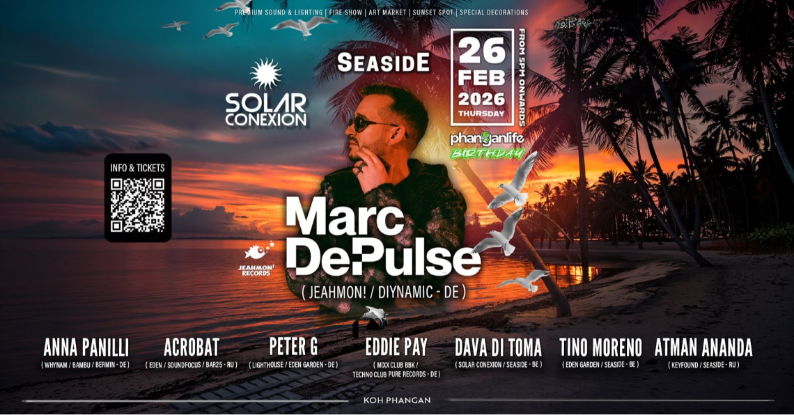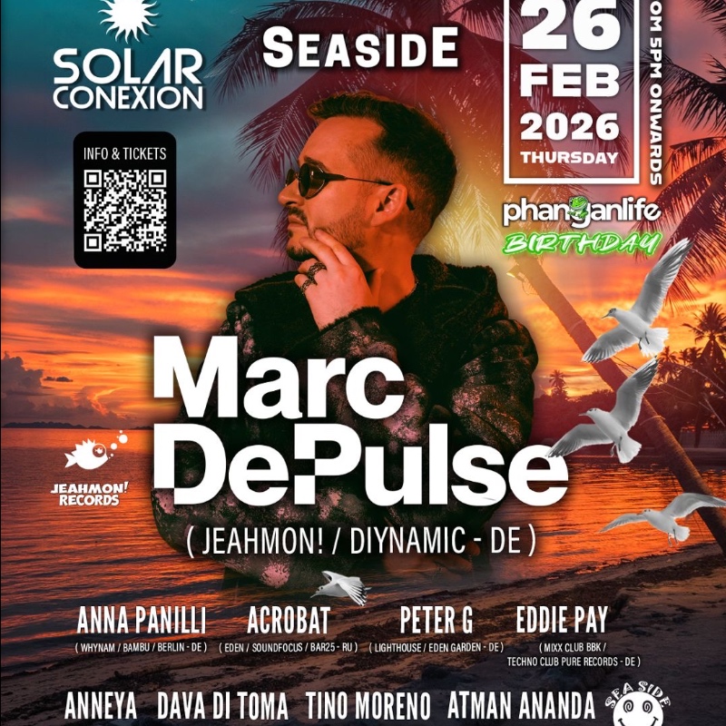 For the first time ever with us, and exclusively this year in Koh Phangan, SOLAR Conexion is proud to welcome MARC DEPULSE from the renowned Jeahmon label! Diynamic and many more… at SEASIDE Sunset Bar! 🤩