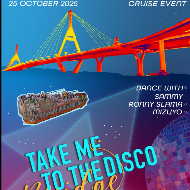 Join us at the Bangkok Island Beach Club from 6 PM till midnight for a night of funk, house, and Latin grooves — plus a 2.5-hour cruise (8:30–11 PM) to the shimmering Bhumbol Bridge 🌉✨