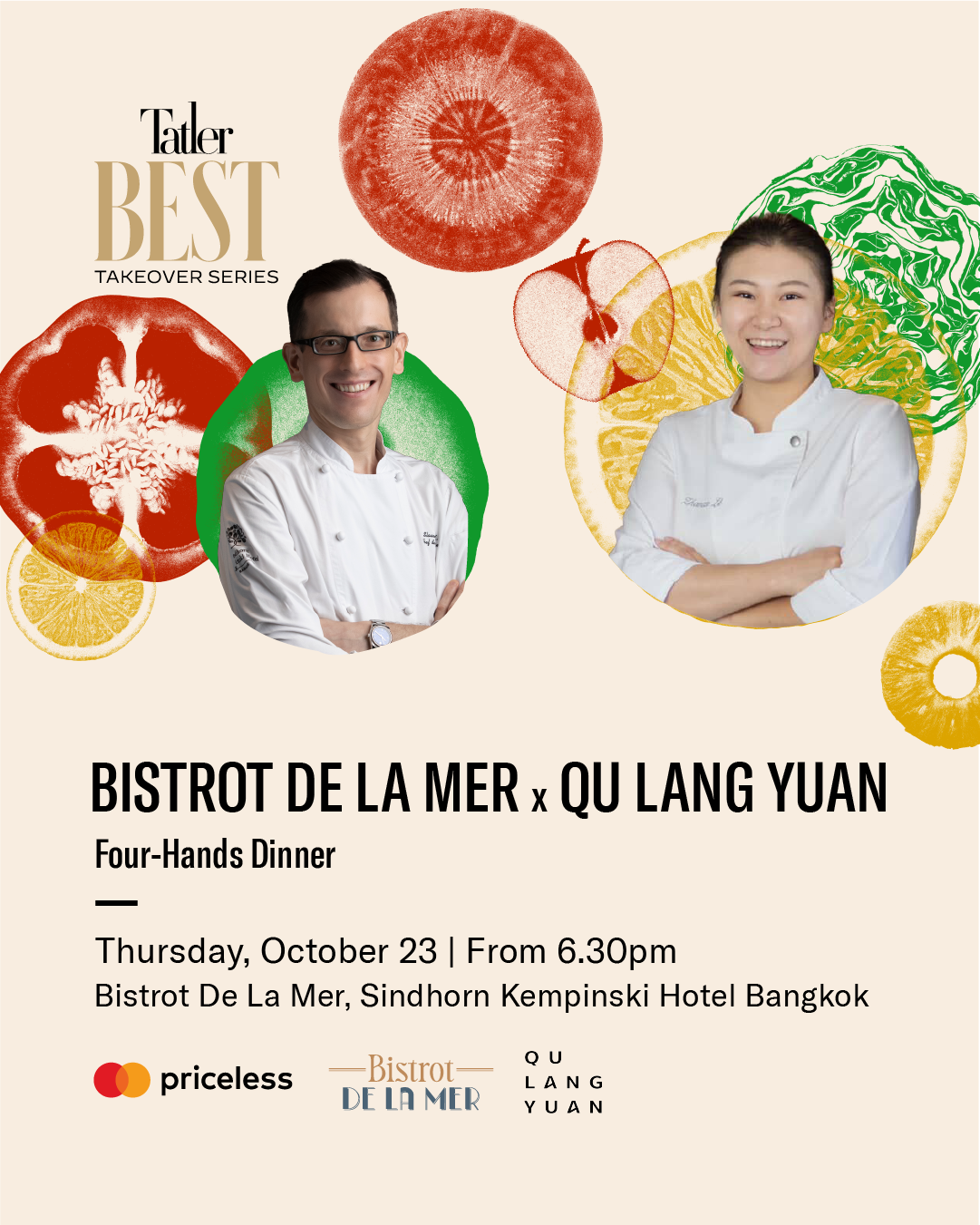 At Sindhorn Kempinski Bangkok, Bistrot De La Mer welcomes Beijing’s Qu Lang Yuan for a Tatler Best Takeover that celebrates cross-cultural creativity. Chef Slawomir Kowalik brings his refined French-Mediterranean style, rooted in coastal inspiration and polished technique. From Beijing, Chef Zhanxu Li showcases their contemporary Chinese cuisine from Qu Lang Yuan, a Tatler Best award-winning restaurant housed in a restored courtyard that blends heritage with modernity. Her cuisine reinterprets Chinese traditions with local ingredients and French precision, creating a bold, elegant expression of Beijing’s evolving food culture. Together, the two chefs craft a collaborative menu that bridges French finesse with Chinese innovation, offering diners a rare culinary dialogue.