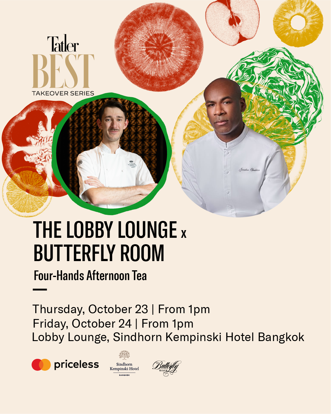 At Sindhorn Kempinski Hotel Bangkok, afternoon tea becomes an extraordinary stage for a Tatler Best Takeovers collaboration. Chef Jonathan Soukdeo, crowned Tatler Best Pastry Chef 2025 and celebrated for his artistry at The Butterfly Room in Hong Kong, collaborates with Chef  Simon Eberhardt, the visionary head pastry chef of The Lobby Lounge. Together, they reimagine the classic ritual with couture patisserie, playful twists, creating an afternoon that feels more like a performance than a tea set. Expect tiers of elegance, bursts of creativity, and a showcase of two of Asia's brightest pastry talents.