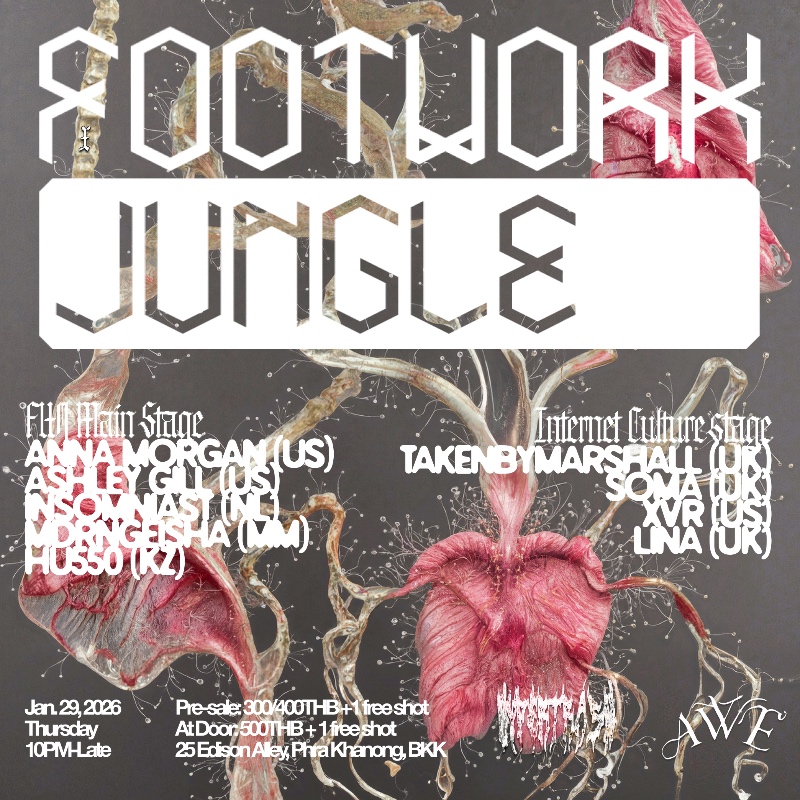 Born as a global hub for high-tempo club mutations, The Footwork Jungle operates at the crossroads of footwork, jungle, breaks, and bass culture. Known for spotlighting boundary-pushing DJs and producers working far beyond rigid genre rules, this collaboration brings raw rhythm, speed, and full-pressure sound system energy straight onto the floor.