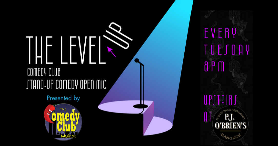 Check out The Comedy Club Bangkok's sister club & 'work out' room - THE LEVEL UP COMEDY CLUB - Stand-up Comedy Open Mic @ P.J. Oโ€™Briens. Come see local comedians, both veteran and newcomers, with international visiting comics LEVEL UP!