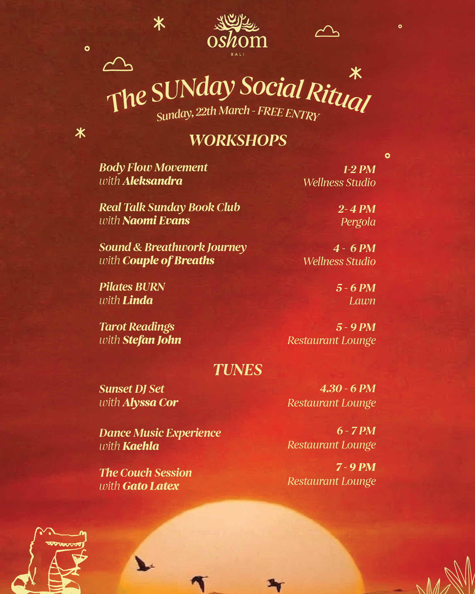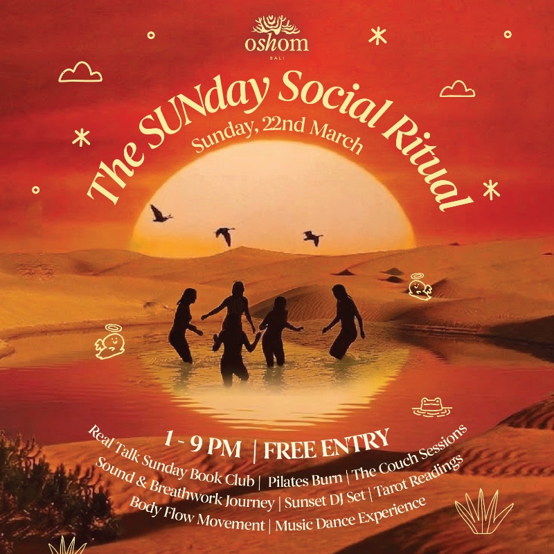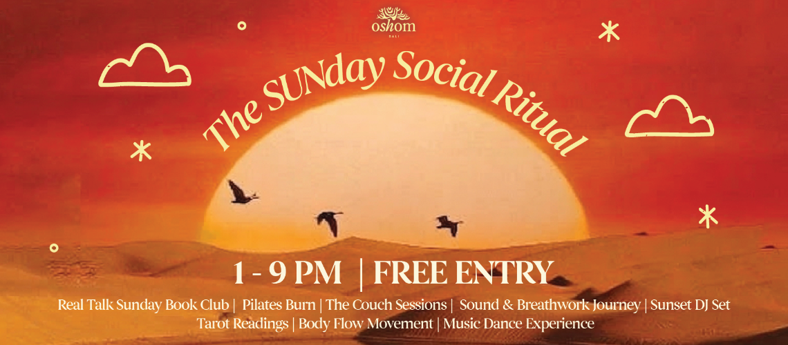 The SUNday Social Ritual is a curated Sunday experience blending movement, breathwork, intuitive exploration, and sunset music in a relaxed seaside setting at Oshom.