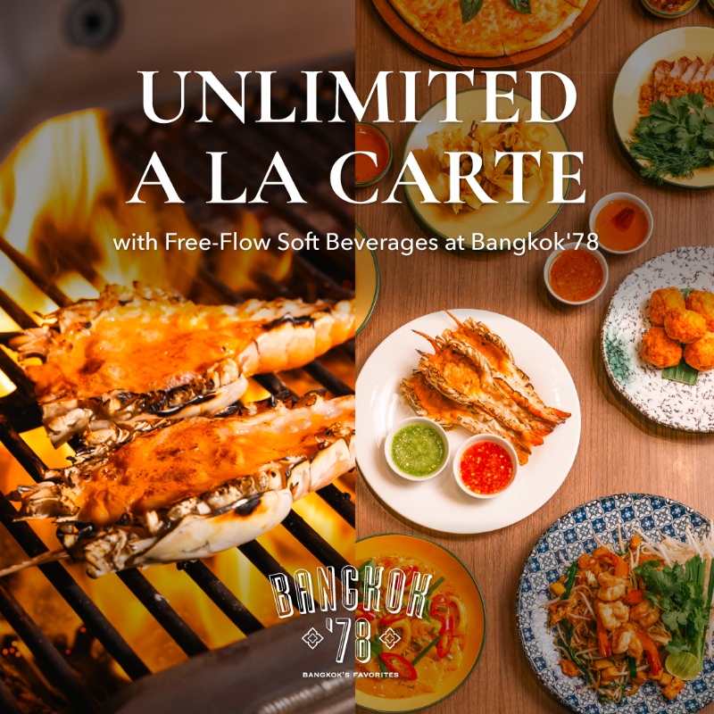 • Unlimited A La Carte includes all-you-can-eat food selections and soft beverages (exclude alcohol) at Bangkok'78