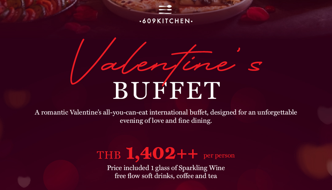 💞Celebrate love this Valentine’s Day with an elegant Valentine’s Dinner Buffet at 609 Kitchen, located at Renaissance Pattaya Resort & Spa. Designed for couples seeking a romantic seaside dining experience, this special evening features an indulgent international buffet, premium seafood selections, and decadent desserts—perfect for an unforgettable night together.