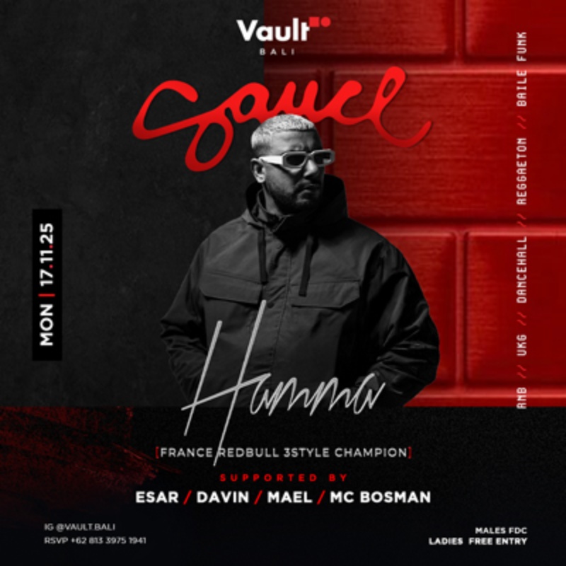 Get ready for a night that ignites the underground Vault Bali proudly presents DJ Hamma, the Paris-based Tunisian DJ and producer who’s redefining global nightlife with his powerful fusion of Afro beats, Amapiano, and hip-hop grooves. Known for his explosive energy and unmatched crowd control, DJ Hamma brings his signature sound straight from Europe’s top clubs to the island’s most iconic vault of rhythm.