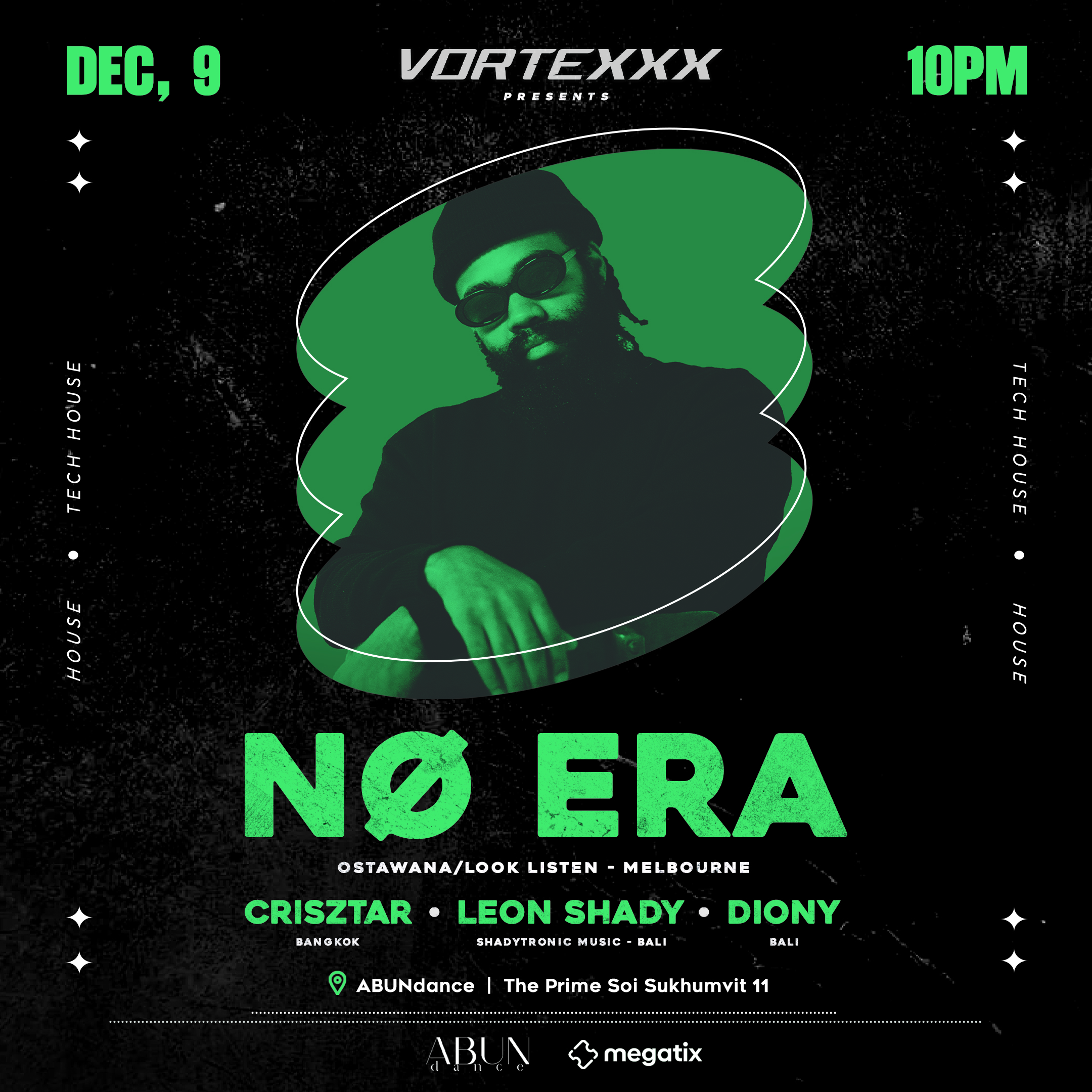 THE PARTY OF UNTAMED ENERGY AND LIMITLESS VIBES. FROM WAVY GROOVES TO EXPLOSIVE DROPS, WE DELIVER THE FINEST HOUSE MUSIC AND TECH HOUSE BLENDED WITH AFRO HOUSE, LATIN TECH, WITH POP CULTURE INFLUENCES. A MIX OF CUTTING-EDGE SOUNDS, SURPRISE PERFORMANCES, AND A CROWD THAT KNOWS HOW TO KEEP THE FIRE BURNING. WITH TOP DJS FROM THAILAND AND AROUND THE GLOBE, TAKING OVER THE DECKS, EVERY LINEUP IS FRESH, POWERFUL, AND UNFORGETTABLE. THIS IS WHERE MUSIC, CHAOS, AND FREEDOM COLLIDE. STEP IN, LET GO, AND LOSE YOURSELF IN THE CRAZY. VORTEXXX – THE ULTIMATE PARTY YOU’VE BEEN WAITING FOR.NØ ERA (DJ/PRODUCER)