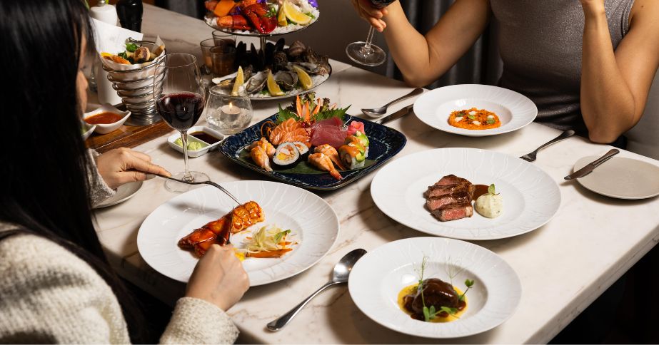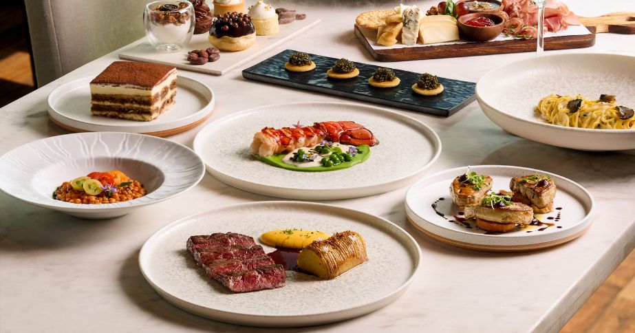 Treat your family and loved ones to our Signature Sunday Brunch with the “At the Table” menu, featuring a premium seafood tower with French oysters, Alaskan king crab, Boston lobster claw, and Argentinian red prawns, alongside artisanal Italian cold cuts and cheeses, foie gras crostini, and a “Sturia” caviar trolley (one round). Rotating unlimited main courses, such as Grilled Lobster, Australian Wagyu, and Australian Lamb Rack, are freshly cooked à la minute. Explore fresh Japanese sashimi, assorted sushi, and Thai classics, including Wagyu boat noodles, followed by an array of desserts and a tableside tiramisu specialty.